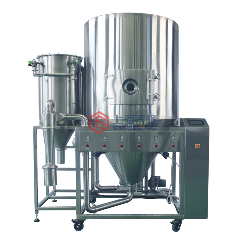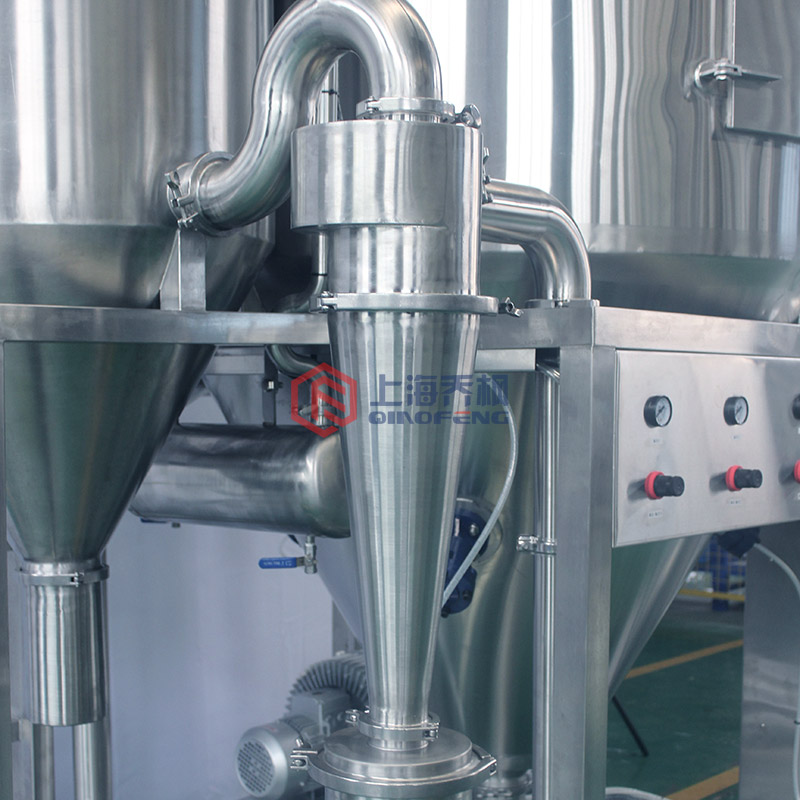本款噴霧干燥機(jī)由八個(gè)系統(tǒng)組成,即供料系統(tǒng)、霧化系統(tǒng)、干燥塔、物料回收系統(tǒng)、 尾氣處理系統(tǒng)、加熱系統(tǒng)、管道系統(tǒng)和控制系統(tǒng)。