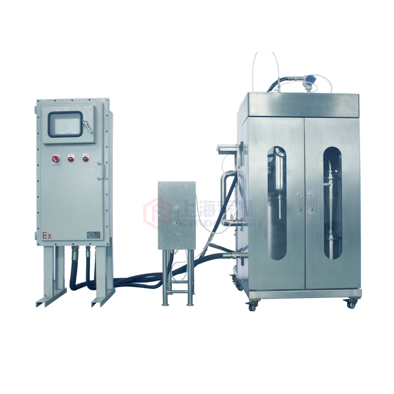 包含:配料罐、溶劑罐、輸料蠕動(dòng)泵、輸料管路、霧化器,**將配置好的漿料投入配料罐,攪拌均勻后在蠕動(dòng)泵的驅(qū)動(dòng)下,漿料通過管路閥門到達(dá)霧化器,霧化器需要配備上海喬楓特制的防爆霧化器噴頭,噴頭壽命保修使用一年。